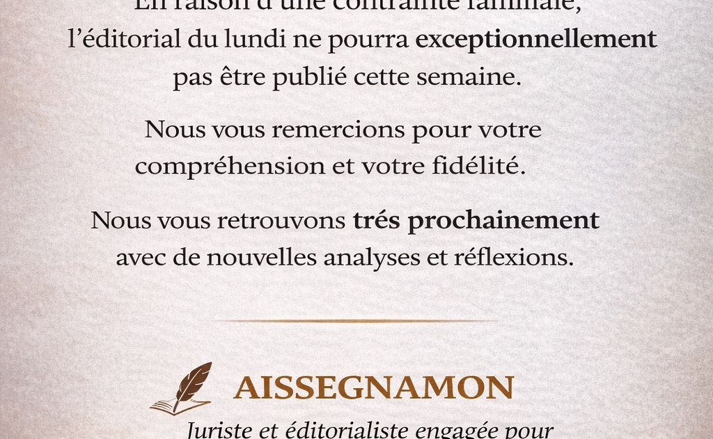 lâĂ©ditorial du lundi ne pourra exceptionnellement pas ĂȘtre publiĂ© cette semaine.