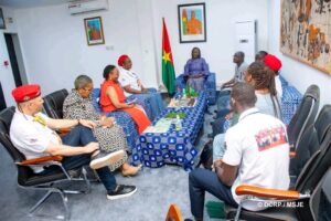 Au cours des échanges, l’Ambassadrice Chiomboru-Koho a tenu à saluer l’exceptionnel esprit de cohésion de la jeunesse burkinabè, qu’elle érige désormais en modèle pour l’Afrique. Elle a souligné que, contrairement à d’autres contextes où les revendications débouchent parfois sur la destruction des infrastructures, les jeunes du Burkina Faso se distinguent par leur unité et leur détermination à bâtir leur nation aux côtés de leurs autorités.