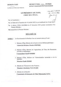 Ces fusions consacrent les départs de Luc Adama Sorgho (Infrastructures) et de Roger Baro (Environnement), ainsi que l’élargissement des portefeuilles de Mikailou Sidibé (Habitat) et du commandant Ismaël Sombié (Agriculture).