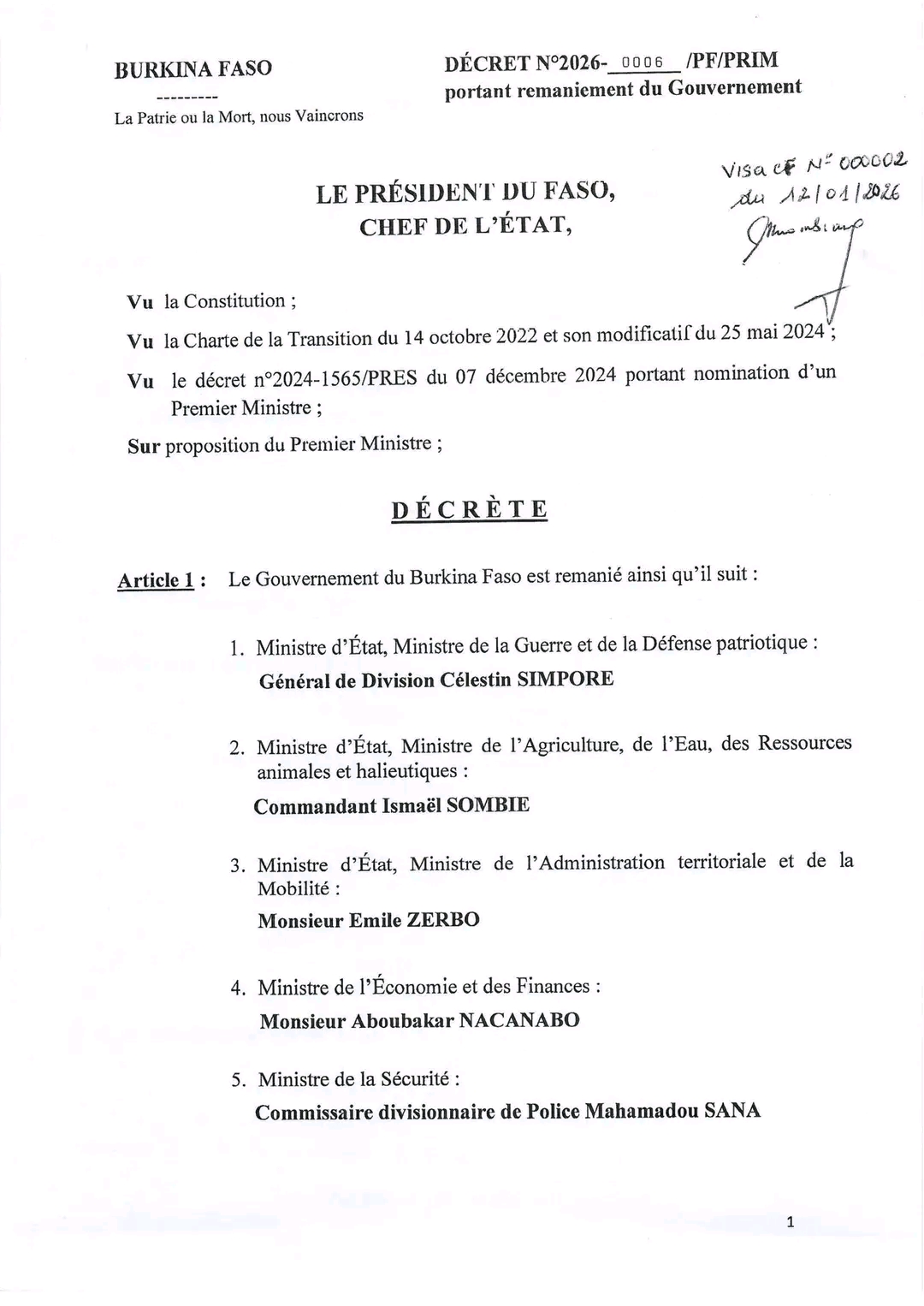Le nouveau gouvernement burkinabè, rendu public le 12 janvier 2026, compte désormais 22 départements ministériels contre 24 auparavant.
