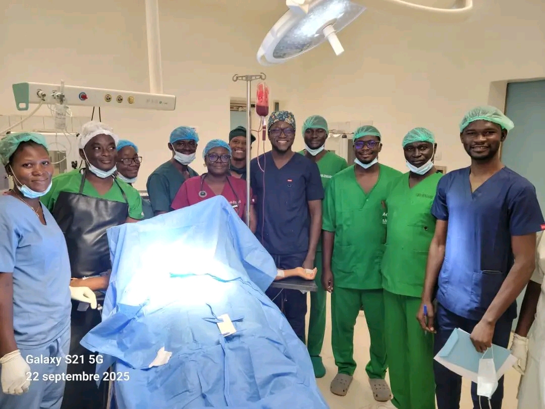 Le 22 septembre 2025, l’équipe d'intervention du jour en gynéco-obstétrique avec à sa tête le chef de service de la maternité Dr NACRO, le médecin Gynécologue du jour Dr Dieudonné LOMPO, le chef de service de l'anesthésie-réa, les ASSOG, Attachés en anesthésie, THH , sage-femmes et maïeuticiens ont réussi l’extraction