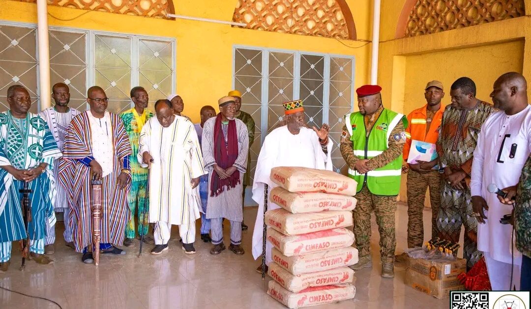 (Ouagadougou, 20 janvier 2026). Sa Majesté le Mogho Naaba Baongo a remis, ce mardi, du ciment, des agrégats et du matériel à l’Initiative présidentielle Faso Mêbo.