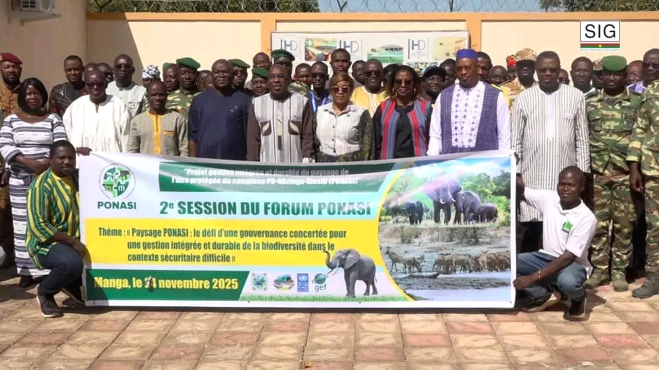 Le deuxième Forum du PONASI s’est tenu le lundi 24 novembre 2025 à Manga, sous la présidence du Gouverneur de la région du Nazinon, Massadalo Yvette SANOU. Cette rencontre avait pour objectif de consolider les efforts de co-gouvernance du complexe d’aires protégées de Pô-Nazinga-Sissili (PONASI), un ensemble écologique stratégique couvrant environ 354 781 hectares.
