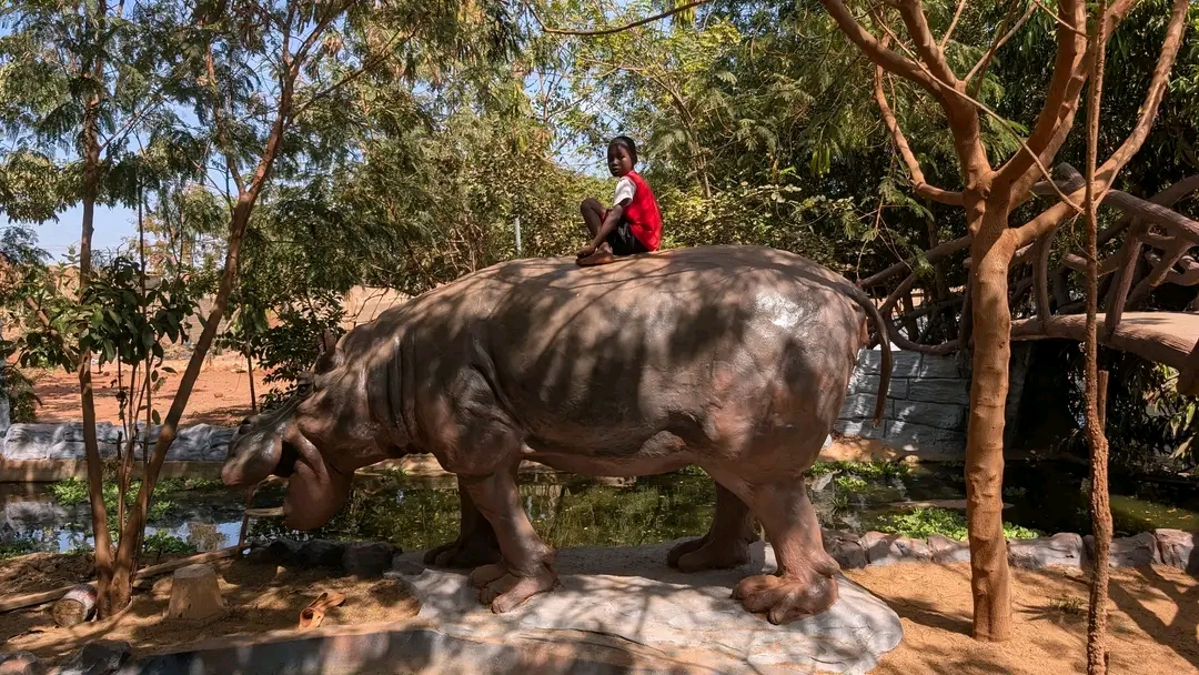 Outre la réalisation des reliefs artificiels et des chutes d’eau, on y trouve quelques animaux de notre faune à savoir des chimpanzés, des chacals, des autruches, des serpents, des éperviers, des oies ainsi que des animaux domestiques notamment des chevaux, des canards, …